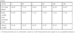 | Half CHest | 51.5 | 55 | 58.5 | 62 | 65.5 | 69 | 72.5 | 79.5 |